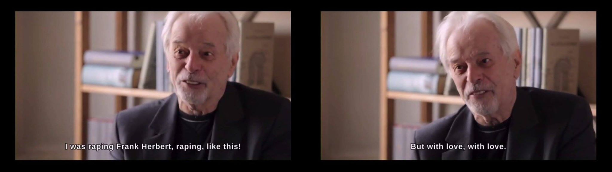 Alejandro Jodorowsky je tvůrce se znatelným rukopisem. Ať už se jedná o Holy Mountains či El Topo, obojí jsou filmy výrazné a víceméně šílené. V sedmdesátkách dostal nabídku, která byla možná snad jen v sedmdesátkách. A to natočit si cokoliv. Jodorowsky se nerozhodl pro Hamleta nebo Don Quijota, rozhodl se pro adaptaci Duny Franka Herberta. Románu, který ani nečetl, jen o něm slyšel. Měl v plánu natočit film vzdalující se od předlohy, mělo jít o jeho vlastní vizi zprostředkovávající lidem zážitek srovnatelný s užitím LSD. Jak zazní v dokumentu, Jodorowsky znásilňoval Herberta a znásilňoval ho s láskou. To neříkám já, to říká sám Jodorowsky.