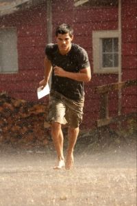 Martin, Josef: Mně to připomnělo tu scénu z Vampire sucks, ve které si Jacob sundá zničeho nic triko, Becca (á la Bella) se ho zeptá, proč to udělal, a on jí odpoví, že má ve smlouvě, že si musí každých deset minut bezdůvodně sundat triko – a na to se pohledem, který bych popsala jako vyčítavý, významný a ironický, podívá do kamery. Líbí se mi, jak v tom filmu přivádějí do absurdna některá fakta z původních filmů.