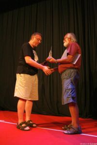 Zjistila jsem, že čas na conu pádí rychlým tempem. Než jsem se nadála, už tu byl Večer fantazie. V nabitém programu jsme shlédli nejen celou řadu vystoupení od pantomimy až po kung-fu, ale také dva křty. Na prvním z nich byl do světa vypuštěn poslední díl Agenta JFK Dlouhý temný úsvit od jednoho z otců série Jiřího W. Procházky. Za kmotry mu šli překladatel Jan Kantůreka a spisovatelka Františka Vrbenská. JWP si usmyslel, že přítomným přečte kousek z nového příběhu. No, a protože není žádný troškař, řekl si, že když už je v tom, rozšíří ukázku rovnou na celou knihu. Nakonec se ji místo autorského čtení rozhodl představit spíše prostřednictvím autorského hraní. Zdálo se, že druhý křest knihy Jana Kotouče Volání do zbraně bude o něco klidnější. Kmotr David Weber ale ukázal, že si co do šílených nápadů s JWP nezadá a prohlásil, že v Americe se knihy zásadně křtí tím způsobem, že vezmete jejich autora lahví sektu pořádně přes hlavu. Nakonec se spokojil pouze s politím knihy a Johnakovy hlavy obsahem zmíněné lahve.