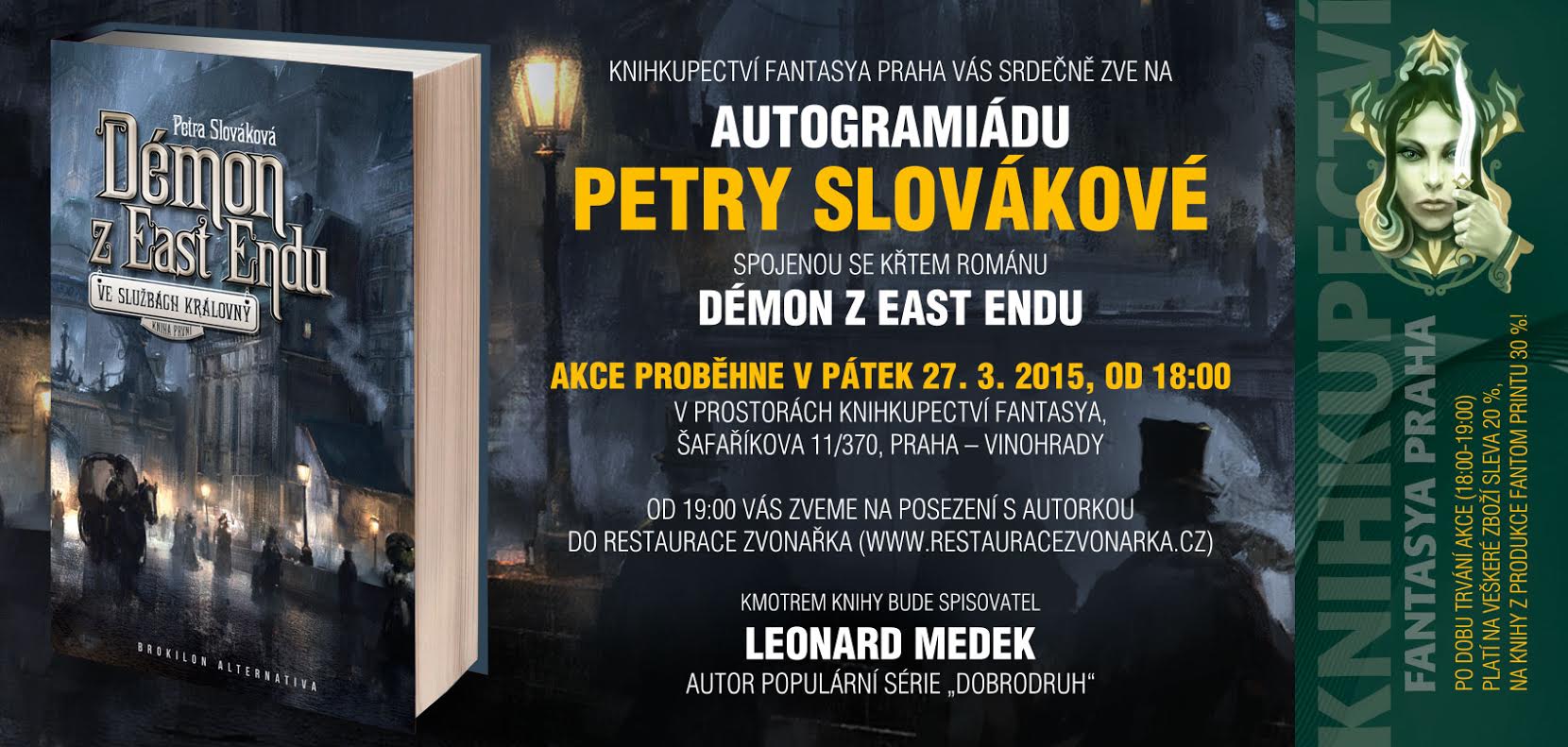 V knihkupectví FANTASYA PRAHA se uskuteční autogramiáda Petry Slovákové spojená se křtem románu „Démon z East Endu“.