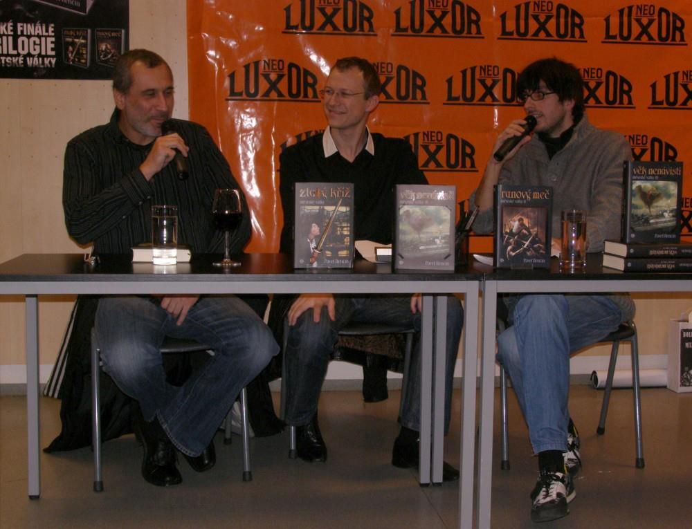 Poté už byl nejvyšší čas se přesunout na Václavské náměstí, kde bylo v Paláci knih Neoluxor vše připraveno na křest posledního dílu kroniky. Role kmotra se ujal charismatický herec David Suchařípa, který má vzhledem k účasti v seriálu Strážce duší k nadpřirozeným jevům vřelý vztah. Zodpověděl několik otázek, a především svým podmanivým hlasem přečetl první kapitolu, což případné váhavce mezi posluchači jistě přesvědčilo, že si knihu stojí za to koupit. Hladký průběh křtu byl přerušen několika neurvalými výstupy podivného individua z podzemí, naštěstí však byl přítomen i Občan vystupující pod iniciálami JWP, jehož respekt vzbuzující muskulatura zabránila ve větších výtržnostech.