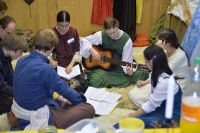 Zpívání na schodech je snad nejtradičnější rituál Tolkienconu, se kterým ale organizátoři nemají nic společného. Většinou kolem půlnoci se na schodech mezi prvním a druhým patrem shromáždí blíže neurčený počet fanů, část z nich s hudebními nástroji, a zpívají a hrají, dokud se neodpotácí co třídy, kde usnou. Já usnul v době, kdy na schodech zbylo deset nejvytrvalejších pěvců.