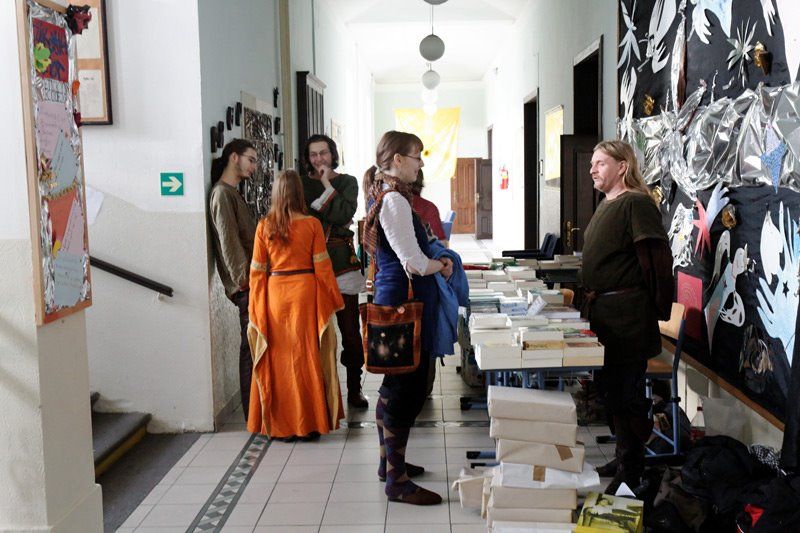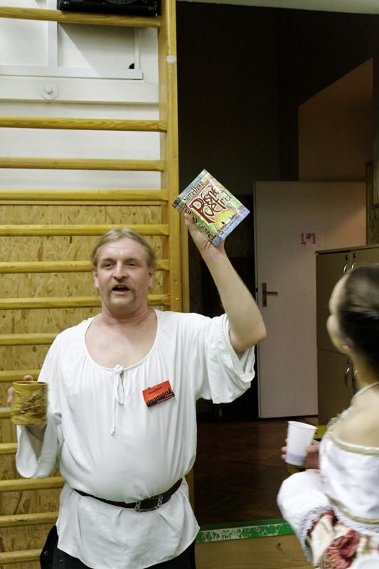 >Nebyl to však jen program, který se na duchu celé akce podílí. Byli to i samotní fanoušci. Letos jich dorazilo okolo dvou set a většina z nich v nějakém kostýmu. Nedílnou součástí bylo i tradiční místo konání v prostorách základní umělecké školy. Spalo se opět ve třídách, v prvním patře prodával knihy Michael Bronec a hned o kousek vedle umístila svoji čajovnu Mírwen. Její široká paleta čajů a dalších pochutin, pohodlná křesílka a dostatečná zásoba stejně naladěných fanoušků a známých solidně konkurovala mnoha pořadům. Což byl také důvod, proč jsem stihl jen velmi malou část programu.