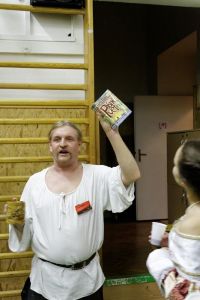 Po divadle, úspěch byl mimochodem obrovský, jsem byl úplně na šrot. Zmožený jsem byl do té míry, že jsem odmítl i pozvání na pivo a jen tak seděl zhroucený v pohodlném křesílku, dokud mi redakční kolegyně Pavla nedoporučila speciální Mírwenin čaj Maté Energy. Do té doby jsem netušil, že se člověk může zčajovat. Letošní Tolkiencon mě ujistil, že to skutečně jde. Při prvním šálku jsem připomínal nešťastnou hromádku bývalého herce a zoufalého reportéra. Po třetí už aktivně vymýšlel plány na první fandomovský bulvární časopis plný těch nejpikantnějších fotografií a fabulovaných historek, které kdy fandom viděl.