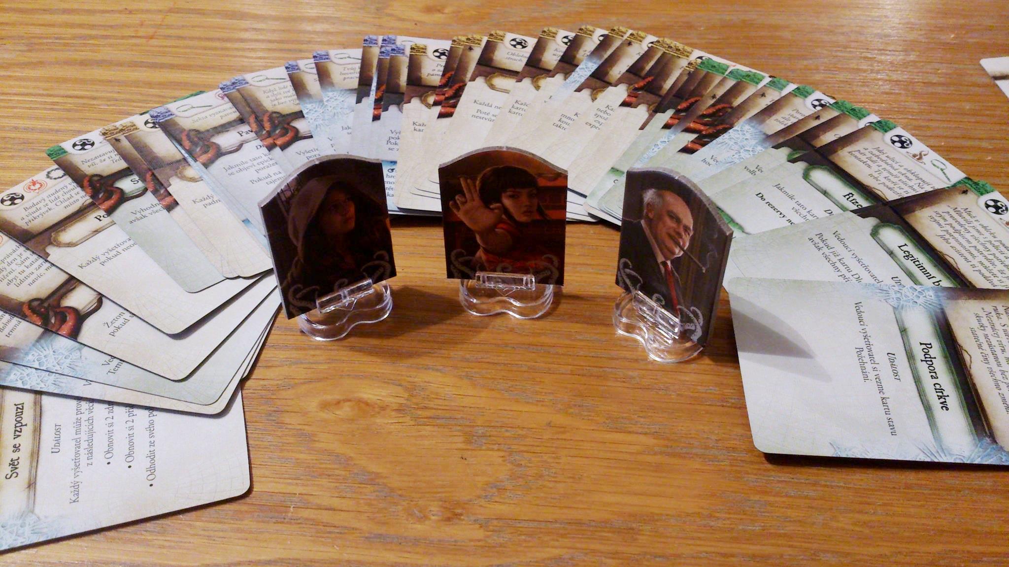 Ano, něco stránek pravidel si budete muset přečíst, také svět a/nebo vy zejména zpočátku občas exnete, tu a tam někdo zabrblá nad dobou trvání hry, ale vážnou námitku máme vůči EH jen jedinou: že vnitřní matrici vymýšlel někdo, komu hrůza ochromila mozek, takže se do vymezeného prostoru všechny karty a žetony nevejdou, nechcete-li je tam nasypat jako zrní pro slepice. Přitom je jich fakt hodně: čtyři monstra mající zálusk na lidstvo, karty pro ně i pro vás, žetony nižších démonů, stop, zranění fyzična i duchovna a mnoho dalších…