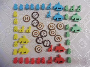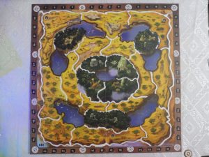 List království, který obdržíte, je vlastně přehledovou kartou s krásnou ilustrací, a k němu přináleží deset válečníků, pět šamanů a tři šampioni – co druh, to odlišná hezká dřevěná figurka. (Komu se nepozdávají prapodivně „posazené“ figurky šamanů, najde vysvětlení na poslední straně pravidel.)