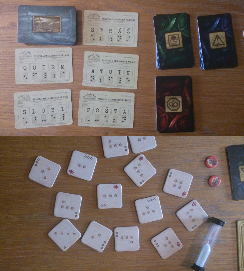 Pravidla nabízejí i různé úpravy obou variant hry, hru pro jednoho a také verzi pro děti. Navíc i možnost vytvoření vlastních karet semaforových zpráv, které se následně můžete snažit odeslat. To jsou ty dobré zprávy. Patří k nim i přitažlivý design celé hry dýchající zeměplošskou atmosférou a stylový návod bez nuceného rádobyhumoru.
