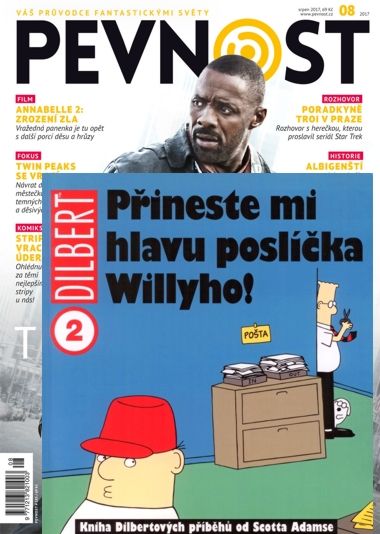 Přílohou nové Pevnosti je skvělá komiksová kniha plná vynikajících stripů!!! Pro ty, kteří celou tu dobu žili ve sklenici od majonézy: Dilbert je druh smolařského inženýra, který lze nejlépe pozorovat v kancelářských krychlích. Jeho jediný přítel, obrýlený pes Dogbert, má v plánu ovládnout planetu a z lidí udělat své otroky. …Dilbertův komiks je určen každému, kdo mívá pocit, že ho obklopují samí idioti. Rozhlédněte se kolem sebe a hned zjistíte, že je právě pro vás.