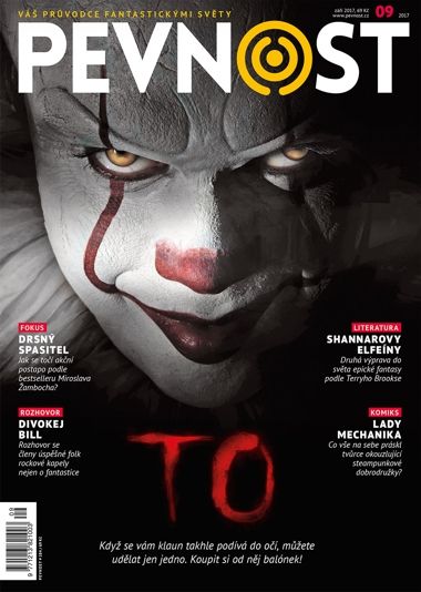 SDÍLEJTE A HLAVNĚ ČTĚTE, PROTOŽE UŽ JE „TO“ TADY! NASTAL SE ČAS BÁT! S NOVOU PEVNOSTÍ PŘICHÁZÍ HRŮZA S KLAUNSKOU TVÁŘÍ, VŠECHNY NOČNÍ MŮRY STEPHENA KINGA A SPOUSTA DALŠÍCH LAHŮDEK ZE SVĚTA FANTAZIE!!! Coulrofobie. To slovo si zapamatujte. Až přijde TO, budete ho potřebovat. A společně s nesmrtelným klaunským zlem si v nové Pevnosti probereme hezky od podlahy ty největší strachy z pera hororového krále STEPHENA KINGA. A aby to nebylo líto Neilu Gaimanovi, podíváme se zpětně na AMERICKÉ BOHY a jejich budoucnost. Stejně tak se ale naposledy rozloučíme s monarchou nemrtvých, s GEORGEM A. ROMEREM. A mimochodem věděli jste, že se u nás točí film o DRSNÉM SPASITELI od mistra Žambocha? Ve fokusu se budeme tomuto fajnovému projektu věnovat na čtyřech stranách. Stejně tak asi ale povíme něco nového i o SHANNAROVÝCH ELFEÍNECH a posvítíme si také na nový žánr LITRPG a s ním spojený ÚKOL PŘEŽÍT. A zatímco povídkami tentokrát přispěli JAKUB HOZA s KATEŘINOU FOLTÁNKOVOU, můžete se těšit i na pokračování COSPLAY profíků a na LADY MECHANIKU. A což takhle exkluzivní reportáž z COMIC-CONU ze San Diega? Nebo chcete proniknout do tajů GENEALOGIE? Případně by vás zajímalo, co má s fantastikou společného DIVOKEJ BILL? Ano, na divoké kombinace jsme mistři a nebojíme se ničeho. I nová Pevnost vládne a nebojte, před klauny vás ochráníme!!! Možná