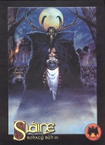 Sláine, mistr křeče obludnosti, muž, který nad hlavou točí těžkou válečnou sekerou Mozkohryzem, keltský král – válečník z časů mýtů a bájí – je mrtev. Jen jeho věrný, ale neustále intrikující trpaslík Ukko zůstal naživu, aby zaznamenal poslední a největší činy svého pána do kroniky. Jedná se o pátrání po Zakázaných zbraních Atlantidy. Úžasné dobrodružství, které ho staví tváří v tvář nevyslovitelnému zlu Rohatého boha. Sláine: Rohatý bůh vyšel ze stránek 2000 AD, nejprodávanějšího, mnoha cenami ověnčeného komiksového magazínu a stal se nejdiskutovanější komiksovou sérií roku 1989. Položil totiž zcela nové základy tradičního žánru Meč a magie. Dokázal skvěle spojit keltskou mytologii, historická fakta a barbarskou fantasy.