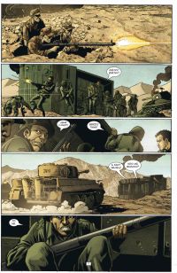 Ennis tak v úvodu knihy vytváří vynikající koláž složenou z chlubení tankistů i pilotů a dosti krvavé ukázky, jak to vypadá v praxi. Hlavní roli v ukázce hrají německé pancéřové Tigery, kompars mu dělají střemhlavé bombardéry Stuka a hudbu v pozadí kulomety MG42. Ennis předvádí to, co mu jde nejlépe, tedy rýpat, provokovat a ukazovat extrémy obou stran hned vedle sebe.