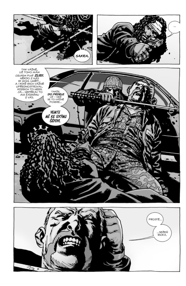 Začíná docházet k jednomu pěknému paradoxu. Zatímco dříve fanoušci komiksů měli dlouhou dobu navrch a mohli tvrdit, jak se seriáloví nadšenci mohou těšit na tohle či ono, letos už (podobně jako v případě Písně ledu a ohně) i Živí mrtví v seriálové podobě předběhli svou původní inspiraci. Samozřejmě mluvím pouze o České republice, neboť v zahraničí již Kirkman překonal 30 vydaných knih. Crew se však nemusí bát, protože mnoho událostí či postav se naštěstí liší a tak je faktor překvapení stále ve vysokých otáčkách. Co si pro nás tedy zombíci připravili tentokrát?