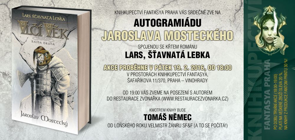 Všechny také srdečně zveme na křest a autogramiádu autora, která se uskuteční v pátek 19. 2. 2016 v knihkupectví Fantasya (Šafaříkova 370/11, Praha) od 18.00. Více informací na facebooku.