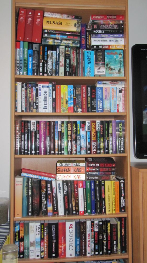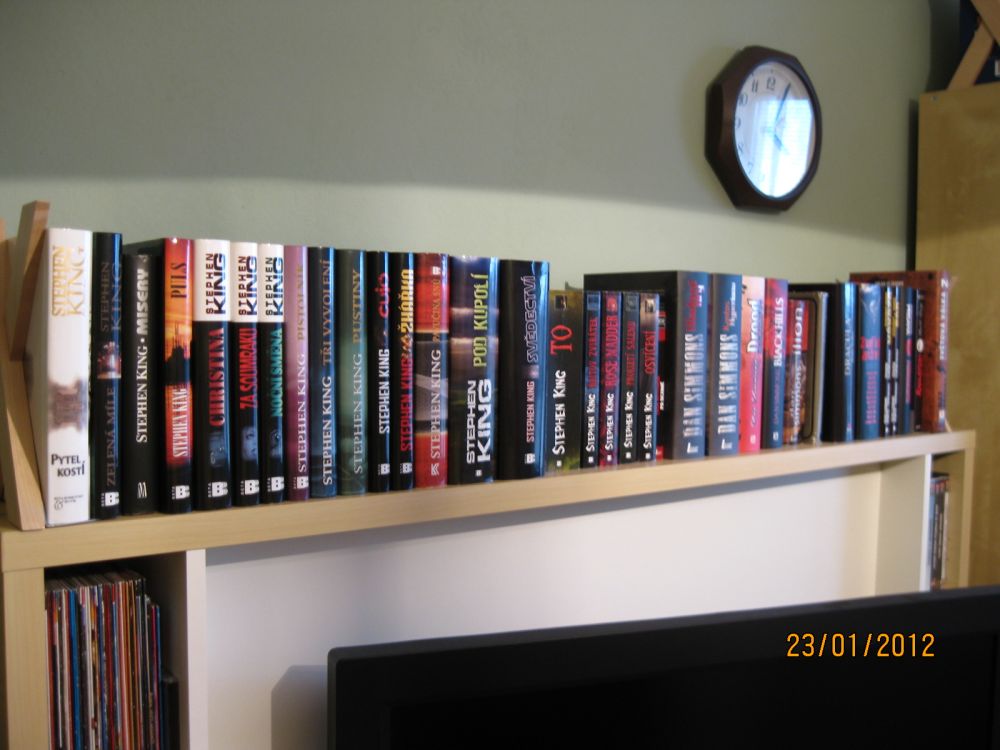 Jak vidíte, místa je málo a Stephen King, kterého kupuju hlavně, píše tak moc… A snad mu to ještě pár let vydrží. Doufám, že se mi brzy podaří předělat obývák, aby to bylo kam dávat… A proč by měla zrovna moje knihovna vyhrát? No, čtení není nikdy dost, a když se tak dívám, žádného z autorů v cenách neznám, takže by to byla ideální příležitost přijít na to, co jsou zač. Kupuju většinou jen prověřené pisálky, takže na tyhle by nemusela nikdy přijít řada. A pokud jsou opravdu dobří, byla by to škoda. Takže máte jedinečnou šanci seznámit mě s někým novým :-).