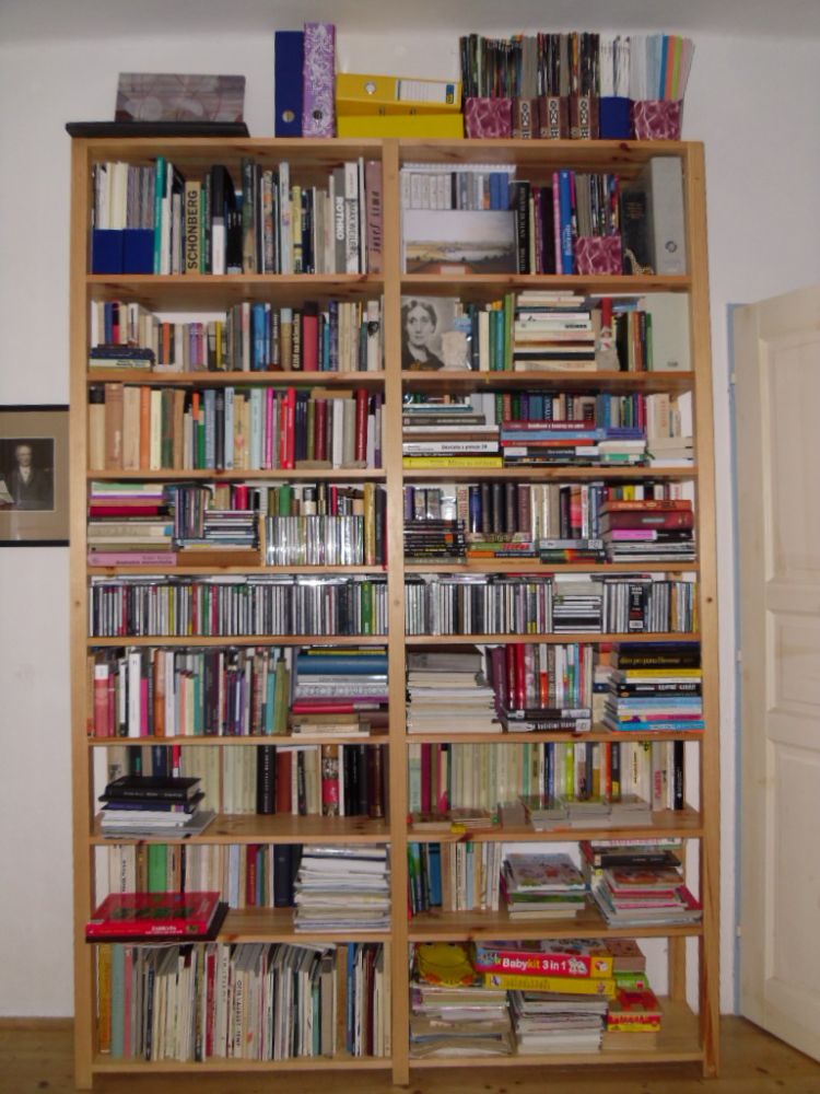 To chce knihovny na míru. Nechala jsem si takovou udělat – podle odhadů počtu knih a jejich výšek jsem vykoumala, kolik polic bude mít výšku 20 cm, 25… Byla to sranda, i když já měla hlavně malý pokojík, kam se to muselo vejít – takže do výšky :).