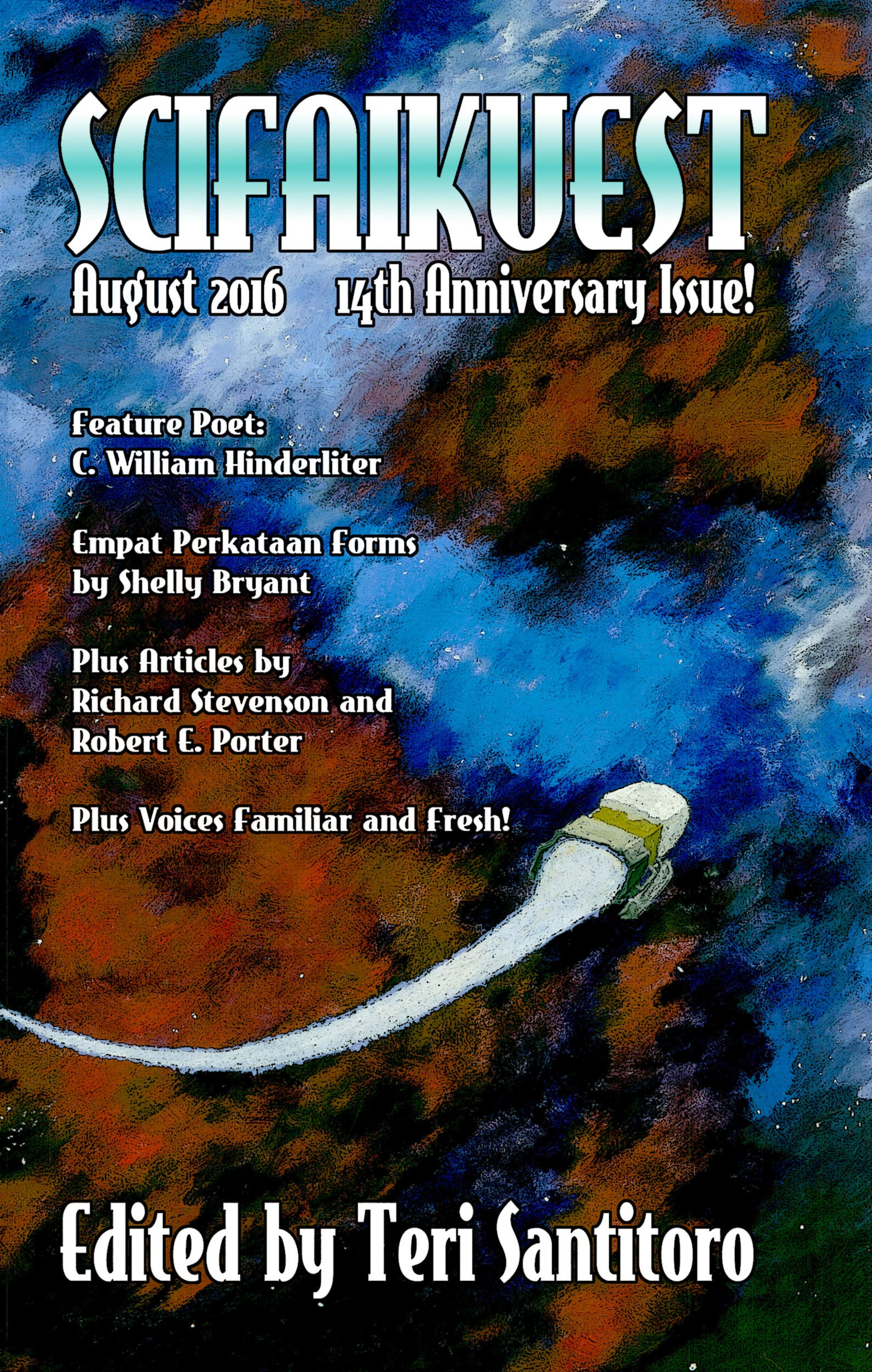 O tom, že se scifaiku stalo v současnosti oblíbenou formou vědeckofantastické poezie, svědčí i fakt, že od roku 2003 disponuje vlastním čtvrtletníkem Scifaikuest, který se dá pořídit online, ale i v tištěné podobě. Scifaiku se také často prosazuje při každoročním udílení Dwarf Stars Award, ceny zaměřené na velekrátké básně do desíti veršů, kterou uděluje americká Asociace vědeckofantastické poezie (o ní zase někdy příště). Například v letošním roce se na druhém místě objevilo toto trojverší autorky Julie Bloss Kelseyové: